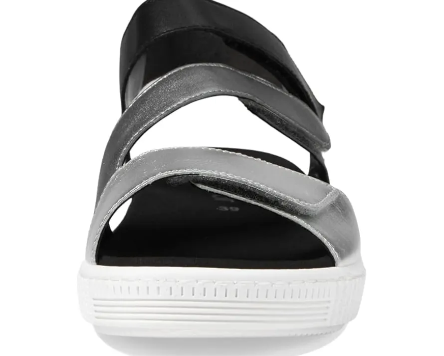 - Uplift your fashion game a notch up wearing Gabor® Gabor 43.600 footwear. It has suede/leather upper in a multi-strap design with slingback. Open toe, leather footbed and leather lining ensures superior comfort on every step. Metallic sheen adds elegance while hook-and-loop strap allows ease of wearing.