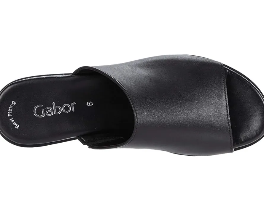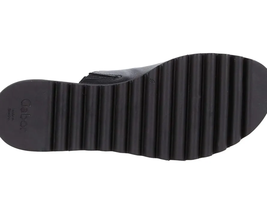 - The Gabor® 44.613 wedge slide has a minimal profile with a sleek leather upper that lends a ’90s-inspired look.