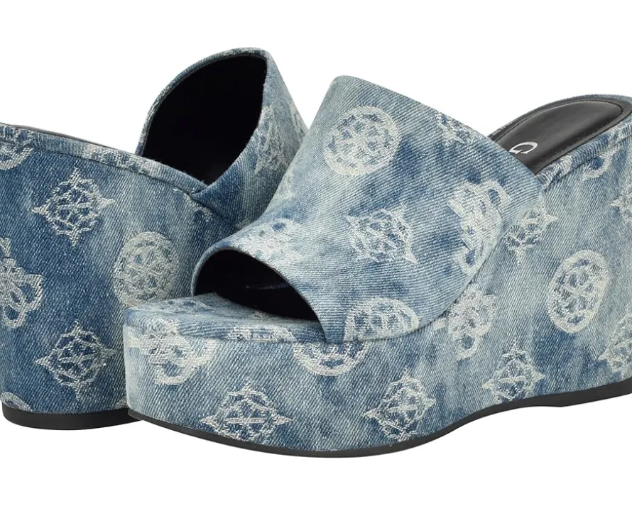 - Barefoot bliss, modern muse in the GUESS® GWYenise: Almond open toe, slip-on closure, man-made PU upper, and lining comfort. Elevate your look effortlessly with the perfect wedge height for day-to-night chic. Crafted for trendsetters since 1981, GUESS blends global flair with everyday luxury. The synthetic rubber outsole ensures stability, making these wedge sandals your go-to for a young, adventurous lifestyle.