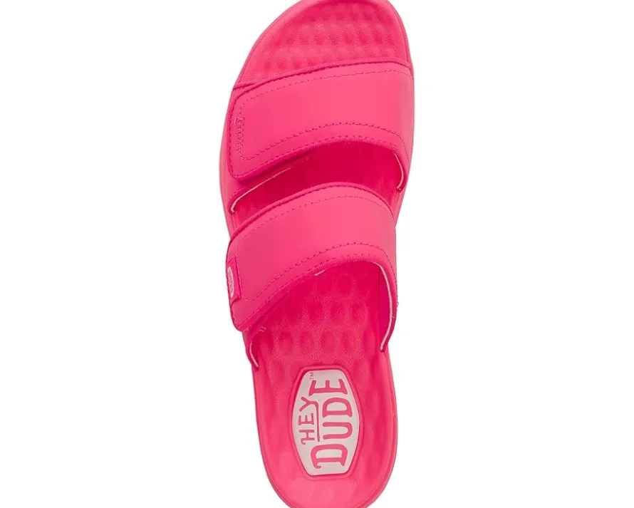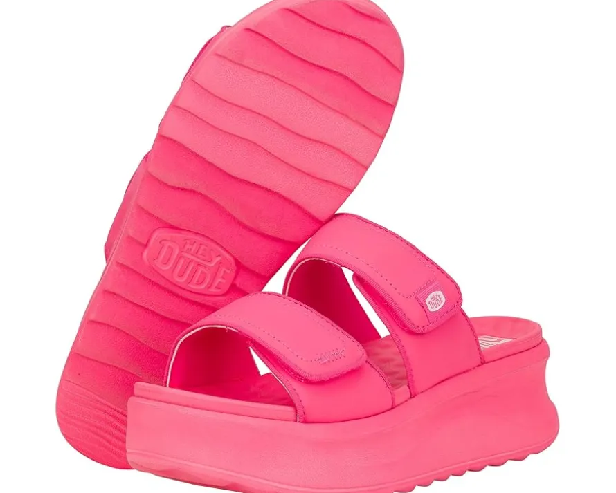 - Show off that chic and flouncy flair wearing the Hey Dude® Delray Slide Mono Flip Flops. The slip-on footwear features adjustable dual hook-and-loop straps with platform heels for sculpted perfection.