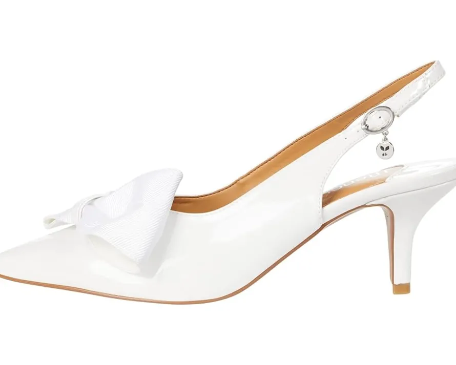 - Pointed toe with bow detail on vamp in a kitten heel.