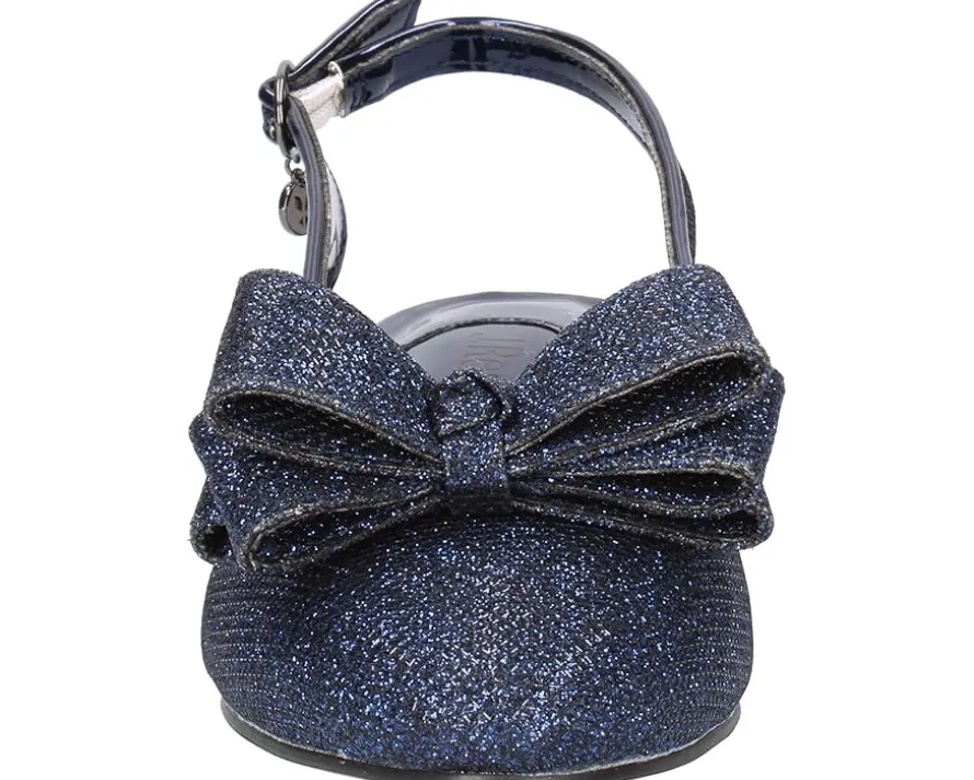 - Glittering textile upper with slingback design and huge bow-tie accent on the foot.