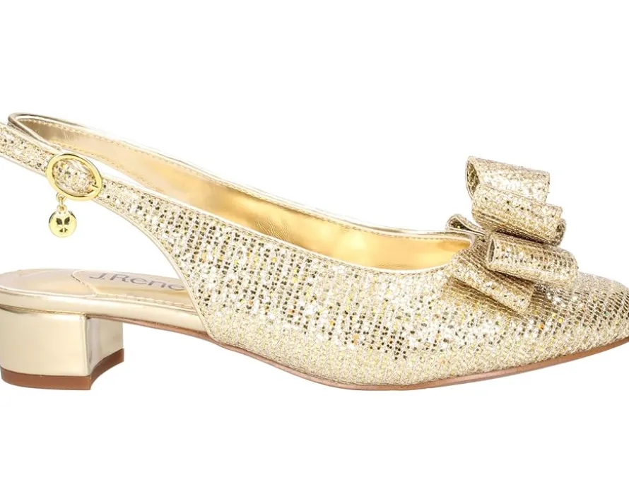- Glittering textile upper with slingback design and huge bow-tie accent on the foot.