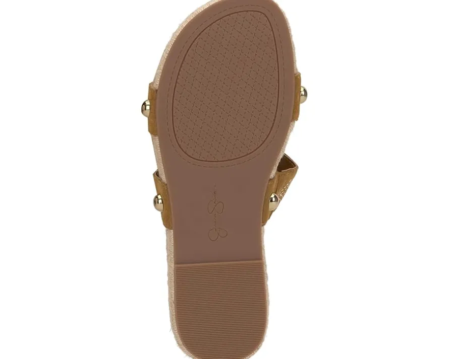 - Give your fashion lifestyle a comfy edge wearing the Jessica Simpson™ Jasdin Sandals. Featuring an espadrille platform, the slip-on footwear has faux leather upper construction with polyester lining and padded insole.