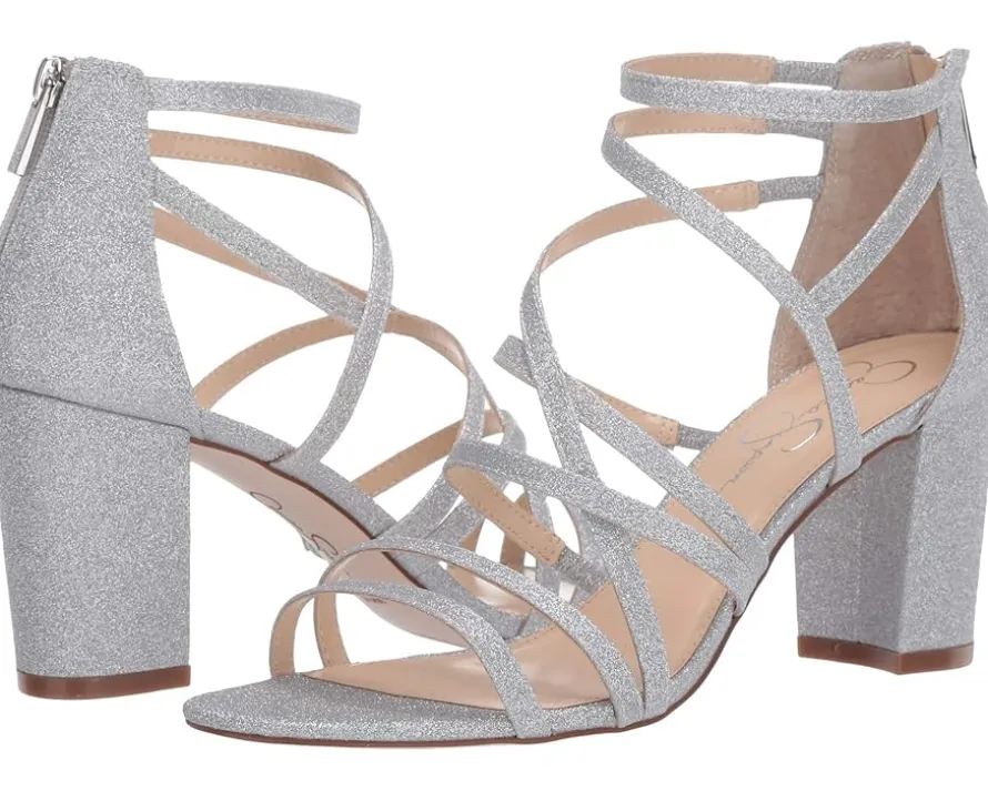 - Get your night started right in the Jessica Simpson® Stassey heeled sandals featuring a snake-embossed, strappy synthetic upper.