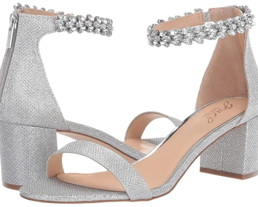 - Elevate your evening attire with the Jewel Badgley Mischka® Bradley. This dress sandal is crafted with a synthetic upper and set atop a sturdy block heel, and features crystal embellishments along the ankle strap.