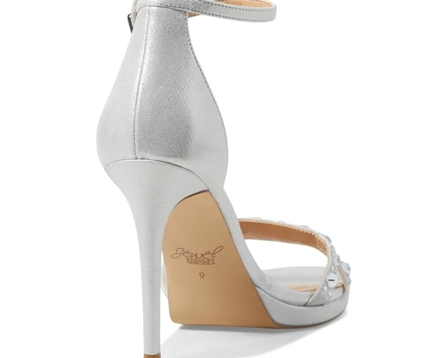- Styled with thin straps with oversized sparkling gemstones, the Jewel Badgley Mischka® Hustle sandals are perfect for making a glamorous entry into any party or event. The adjustable ankle strap with a buckle closure ensures a perfect fit. These high-heeled sandals offer you a height boost and add a chic look to your outfits. From your cocktail gowns to evening dresses, these slim-heel sandals are padded to offer added comfort.