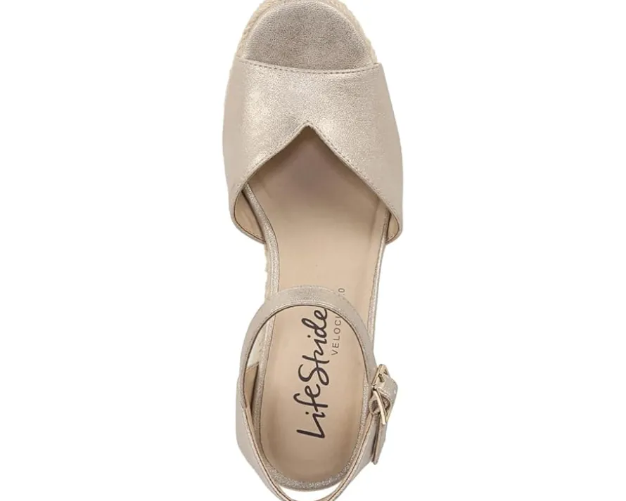- Walk in comfort wearing the LifeStride® Tess Wedge Espadrille Sandals. Crafted from polyurethane upper, this pair of sandals features round toe design, wedge heel, synthetic luxe lining, premium foam insoles, and ankle strap buckle closure.