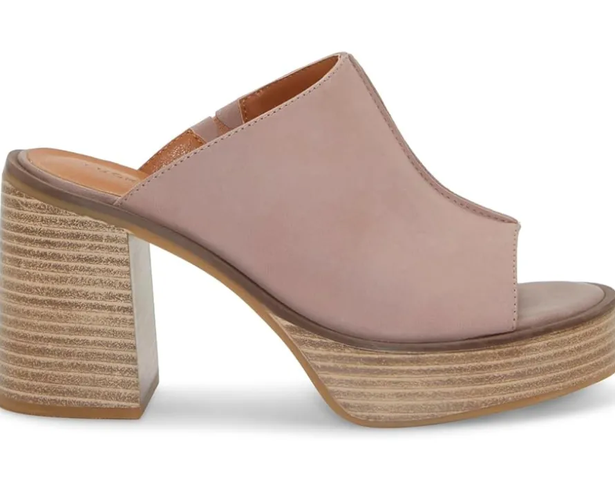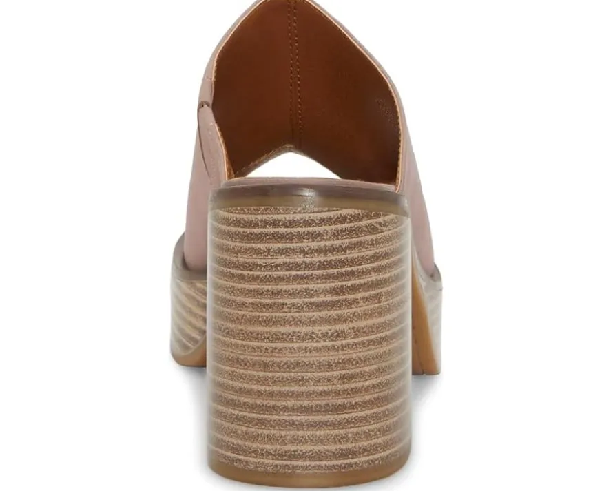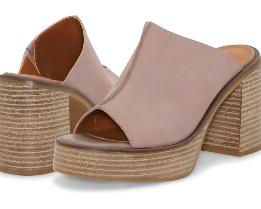 - Stacked block heel with an elevated platform.