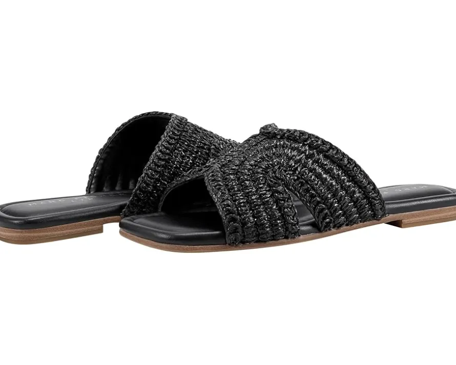 - Designed to enhance your go-to style and comfort during those warmer days, the Marc Fisher LTD™ Narda Flat Sandals feature a breezy and lightweight construction with a textured woven raffia (synthetic) upper, a synthetic lining, and a lightly padded insole. Coming in a slip-on style, the shoes are easy to put on and off.