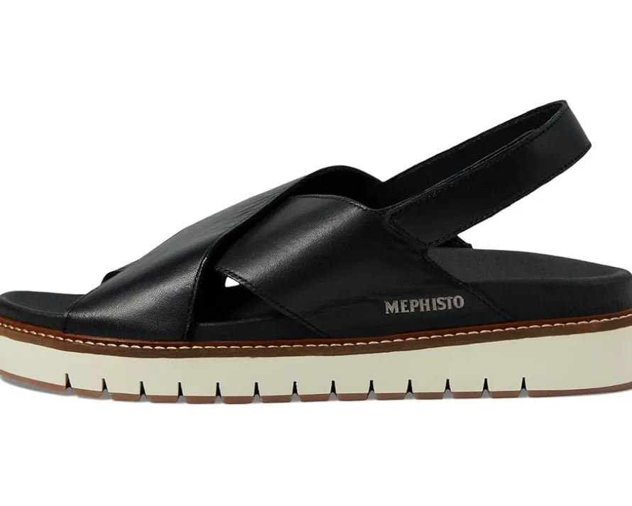 - Let the classic pair of Mephisto® Blanche Flat Sandals be your style ally for any journey. The slip-on footwear features leather upper and lining construction with slingback strap closure.