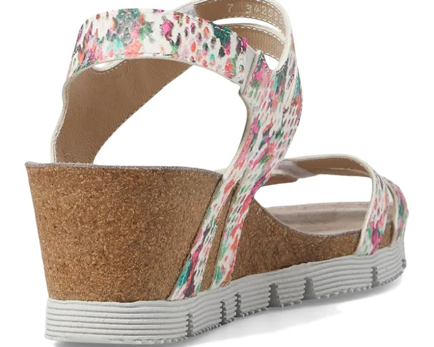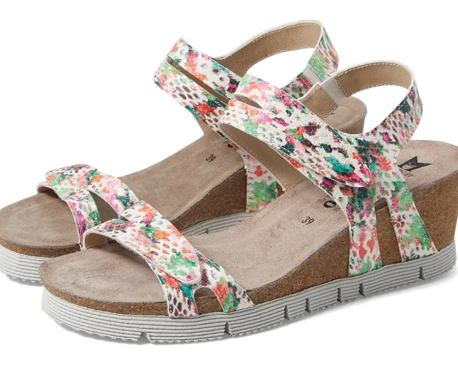 - Crafted with a cork midsole that offers all-day comfort, the Mephisto® Emelia sandals are perfect to pair with different outfits and styles. The multicolored Reptile print on the straps adds a colorful twist to your outfits. These platform sandals come with an ankle strap with a velcro closure for a perfect fit. The AIR-RELAX technology of these sandals makes them a comfortable choice for all-day wear. Get ready for a casual outing or party by wearing these printed sandals.