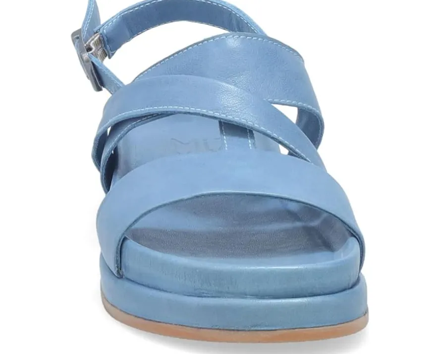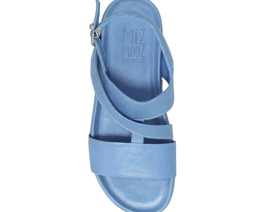 - T-strap design with a thick platform brings a modern twist to the Miz Mooz® Tomas Flat Sandals. The rounded toe footwear features leather upper, lining and insole construction with buckle adjustable slingback strap closure.