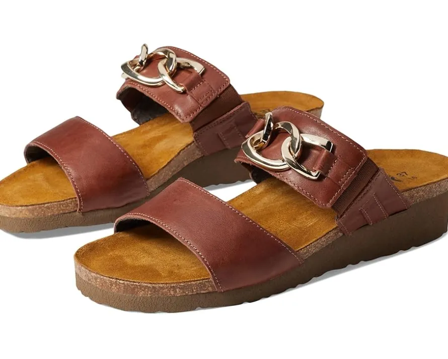 - Embrace the enchanting shade of graceful comfort with the Naot® Kayla. The three-strap sandal is crafted from a natural leather to keep the foot fresh and features an adjustable quarter strap with a hidden hook-and-loop closure.