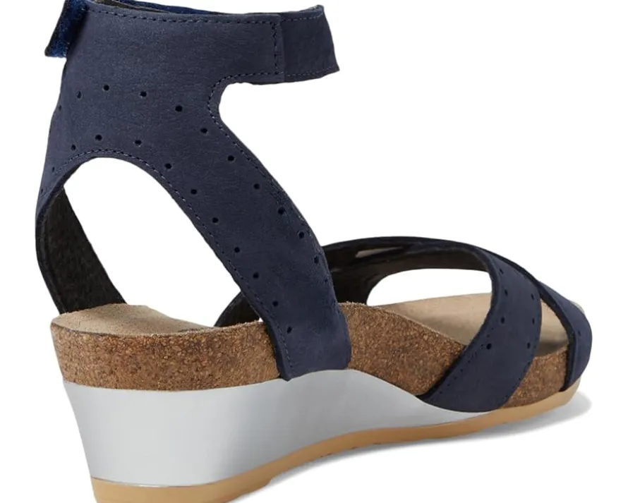 - Cushioned, suede-covered anatomic cork and latex footbed molds to the shape of the foot.