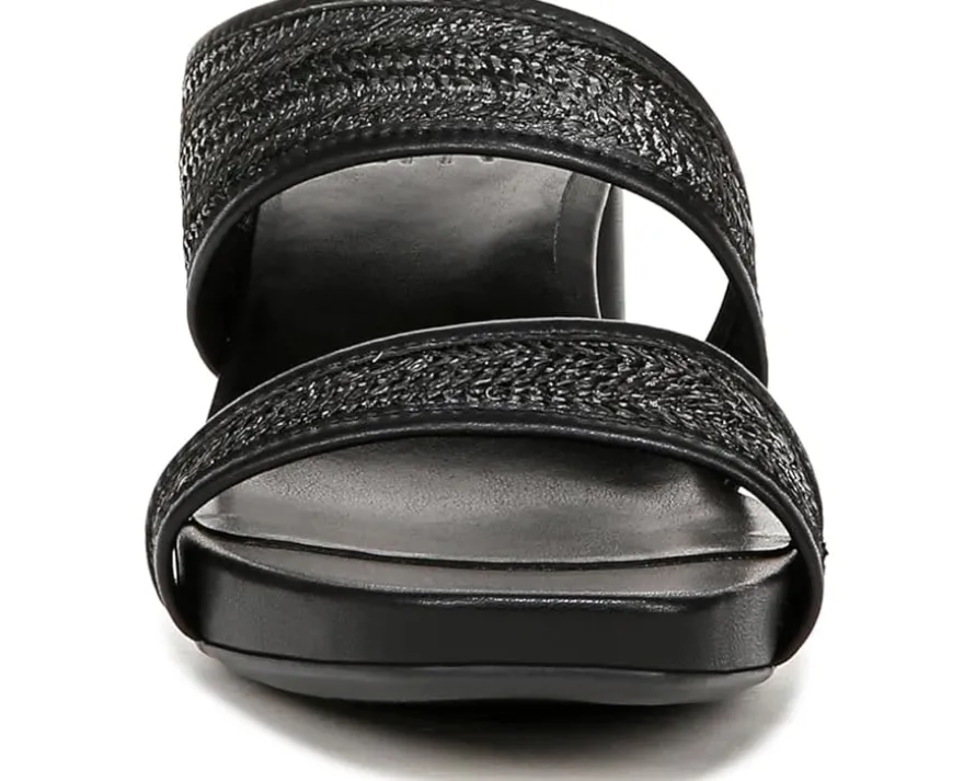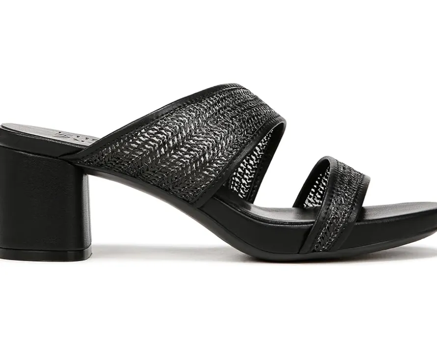 - Featuring Contour+ Comfort technology, the Naturalizer® Inez2 Slides offer all-day comfort and a perfect fit. The polyurethane straw upper features a two-strap design that offers durable support and a stylish appeal. These heeled sandals come with a polyurethane lining and foam insole. From matching your party dresses to formal outfits, these slide sandals work for different occasions.
