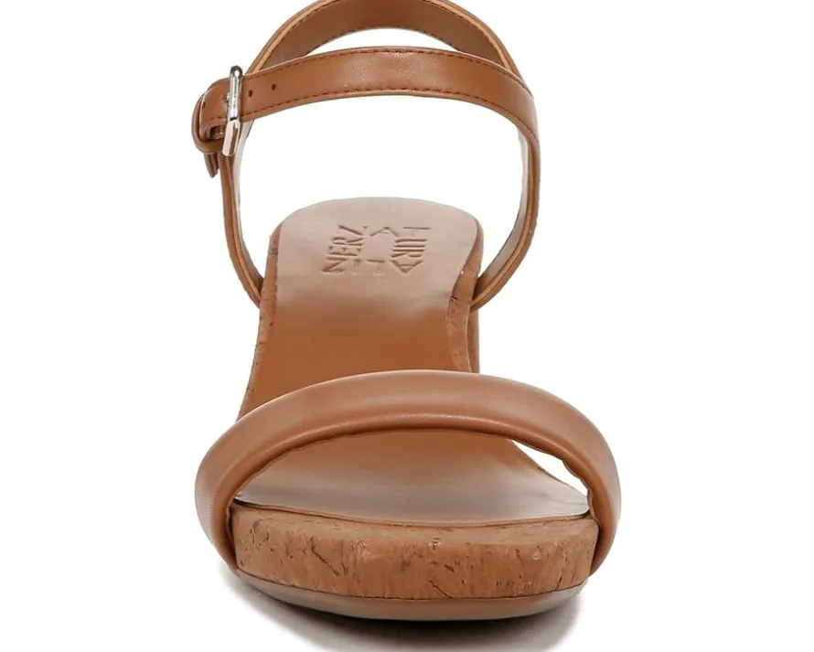 - Turn some heads as you enjoy a stylish and comfortable stride wearing the Naturalizer® Izzy Ankle Straps Heeled Sandals. Crafted in a minimal silhouette with an open square toe, these versatile, party-ready shoes feature a leather or synthetic upper, a soft polyurethane lining, and a foam cushioned footbed. Built with Contour+ Comfort technology, the shoes possess an innovative cushioning system anatomically sculpted to meet every contour of your foot for a premium fit and all-day comfort experience.