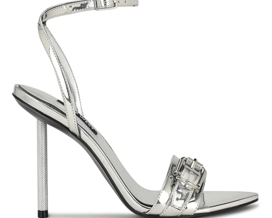- Make a statement with Nine West® Rommie sandals, epitomizing elegance and modernity. These sandals boast a high stiletto heel, adding height and sophistication to your ensemble. The belt buckle strap on the upper offers a touch of chic detail and ensures a secure fit. With a modern almond-shaped toe, they exude contemporary style and versatility.