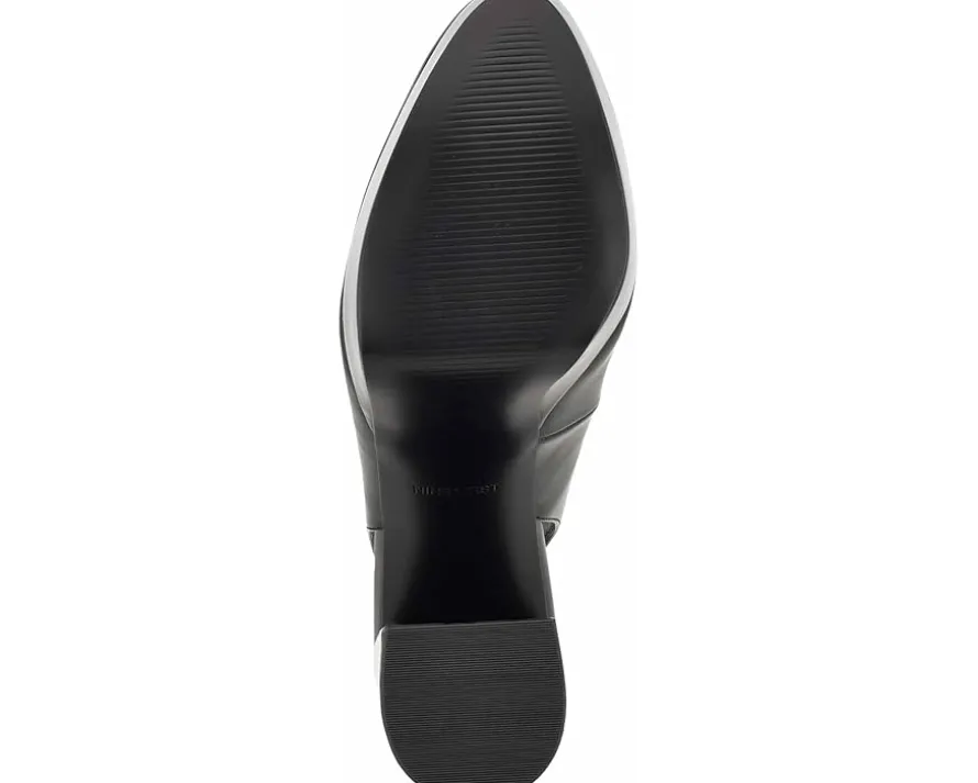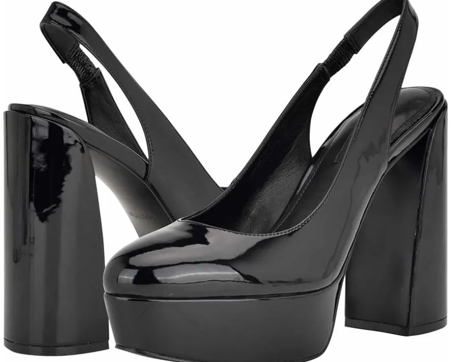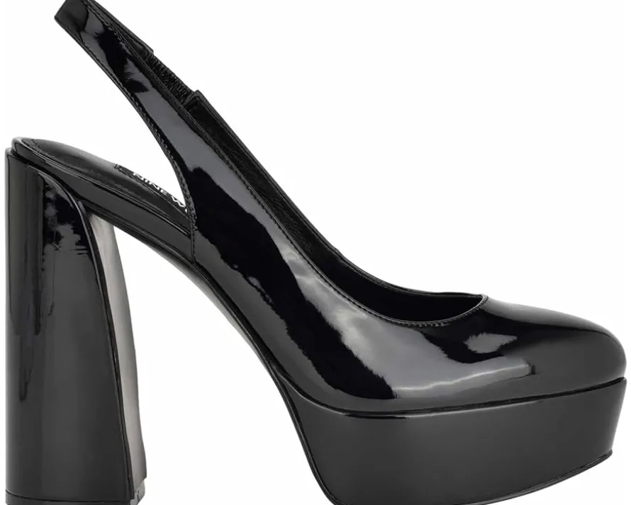 - Walk confidently wearing the high class Nine West® Trins. Crafted from leather upper, this pair of pumps features almond toe design, slip-on style with slingback strap, and block heel for a polished look.