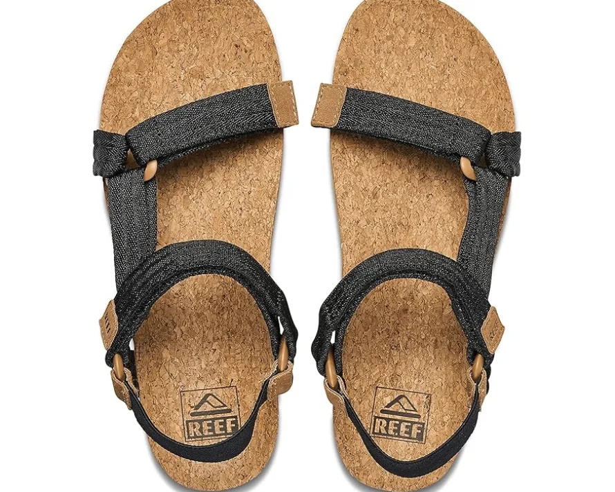 - Let’s be a little cagey, as in straps that hug your foot all the way around, including a comfy elastic backstrap. The Reef® Cushion Rem Hi features our signature cushiony, bouncy footbed, with ultimate arch support, heel cupping, and a genuine cork topsheet. Best of all, these sandal’s straps are made from 100% post-consumer plastic material, so you can feel good about them in every way. A layered, on-trend sole takes these platform sandals up a notch, so to speak. Cute, comfy, and up for anything.