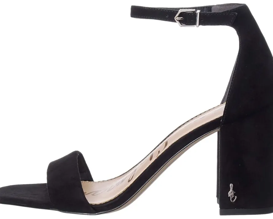 - Dance the night away in the metallic Sam Edelman® Daniella heels featuring a leather upper with an open, square-toe silhouette on a block heel.