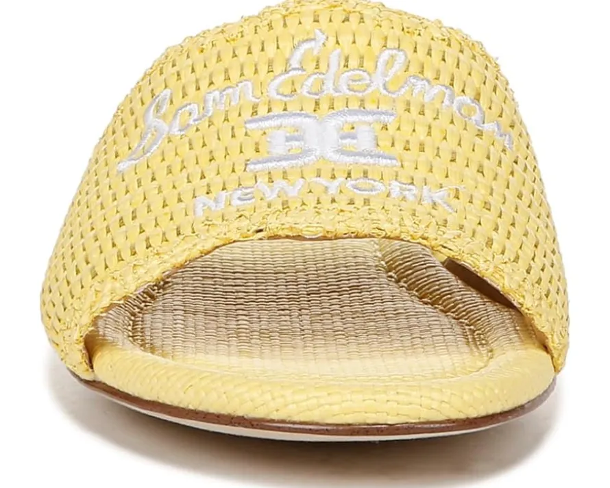 - Be it your casual poolside party or a brunch date, the Sam Edelman® Evette Sandals are sure to spice up your look while treating your feet with an extra dose of comfort. Coming in a slip-on design, these easy-to-wear sandals feature a woven fabric upper with an embroidered logo and branding, a breathable synthetic lining, and a padded polyurethane footbed.