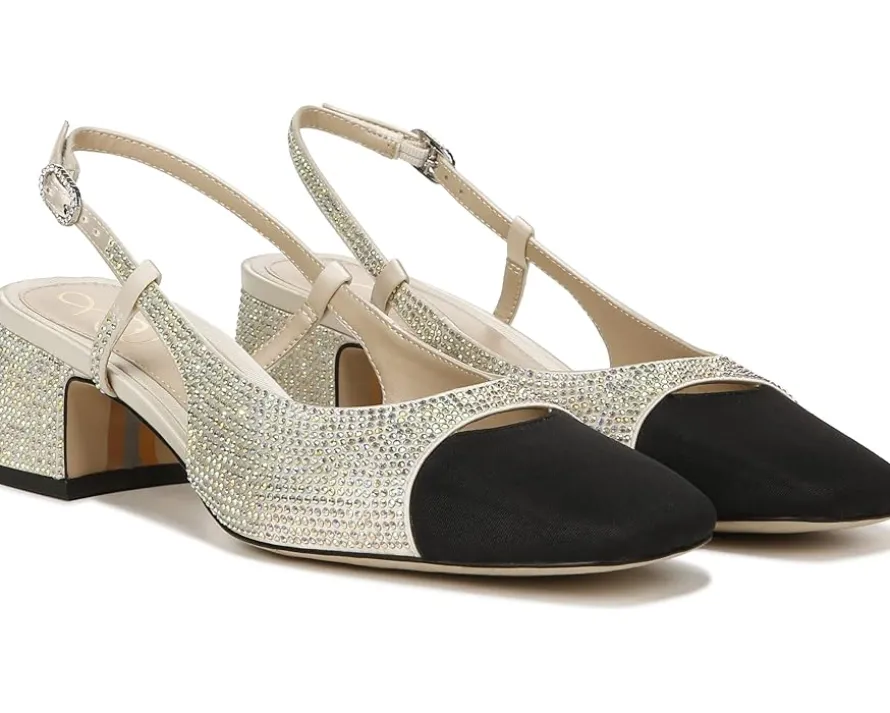 - Make a glitzy statement whenever you step out of the house donning the Sam Edelman® Tarra Glitz sandals. With their dazzling rhinestone embellishments and contrasting toes, these sandals bring an alluring touch to every look you pull off.