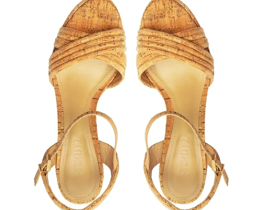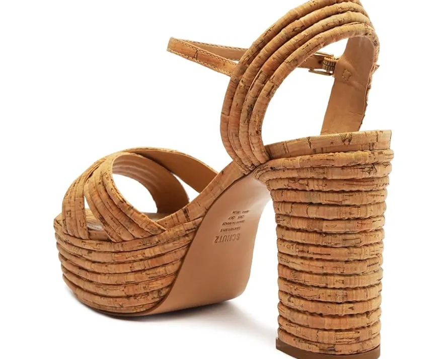 - A total icon in the shoe department, the Schutz® Latifah Platform brings on a style that you would love to embrace this summer! Sculpted with a towering layered platform and block heel made of cork, these slip-on shoes feature a synthetic upper visualizing crossover straps at the vamp and an adjustable buckle strap closure at the ankle.