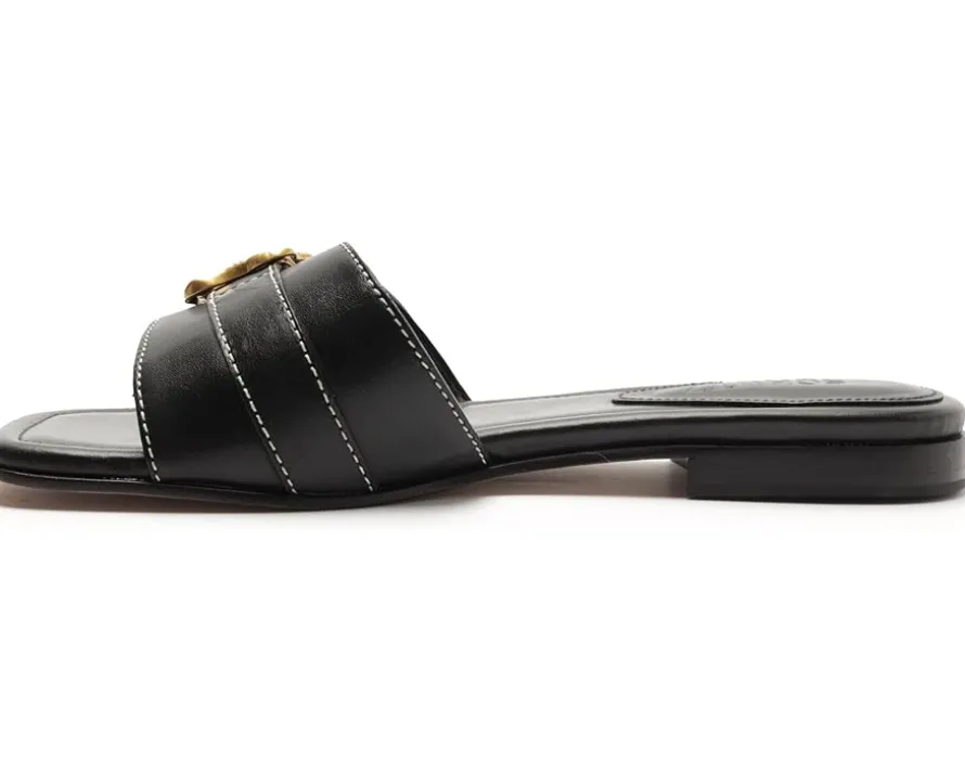 - Dive into the seamless sophistication embodied by the Schutz® Wavy Flat, a harmonious blend of fashion and ease. Crafted with supple leather upper, it features a sleek buckle for a touch of sophistication. The leather lining and outsole ensure durability and premium quality. With a foam insole, it offers cushioned support for all-day wear. Slip into chic simplicity with the slip-on style, perfect for every occasion.