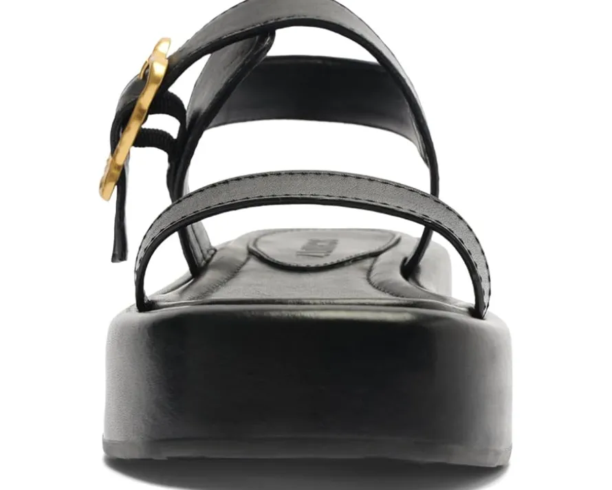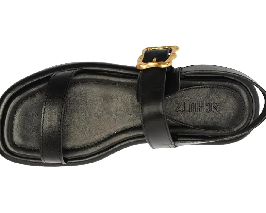 - The Schutz® Wavy Flatform is so comfortable that you’ll want to dance all night long!. These open square toe design sandals feature brand detailing on the footbed, adjustable ankle strap buckle closure, and leather upper.