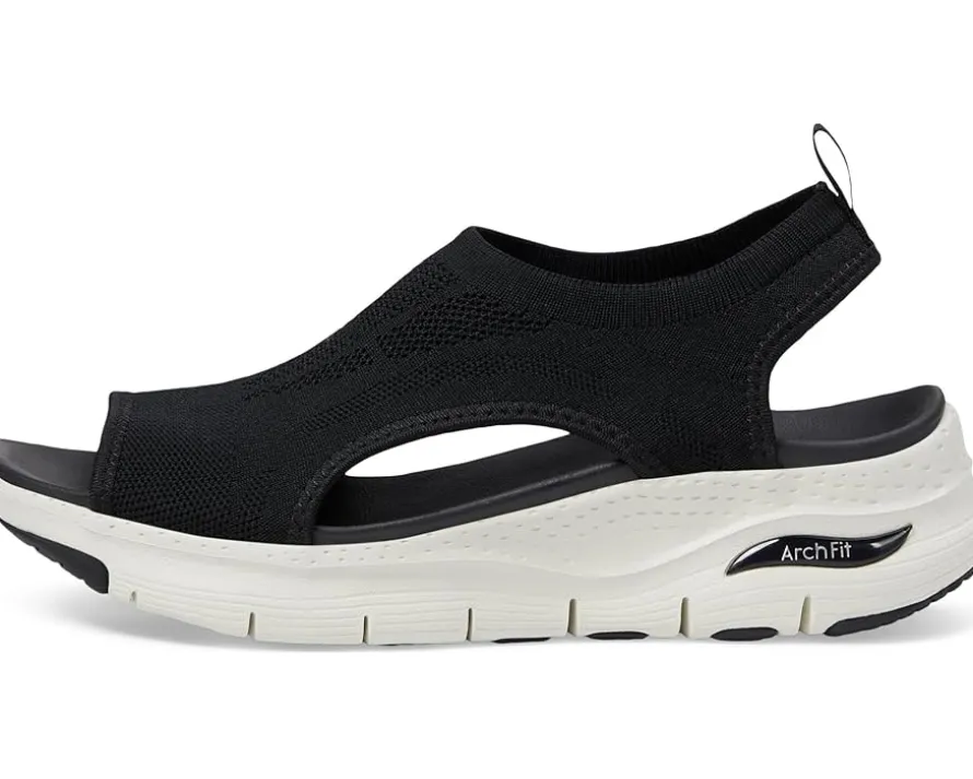 - Supportive all-day comfort and breezy style meet in the Skechers Arch Fit – City Catch. This pull-on sandal features a breathable Stretch Fit engineered knit upper and Arch Fit® cushioned footbed.