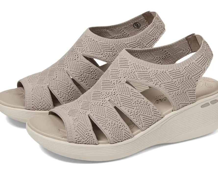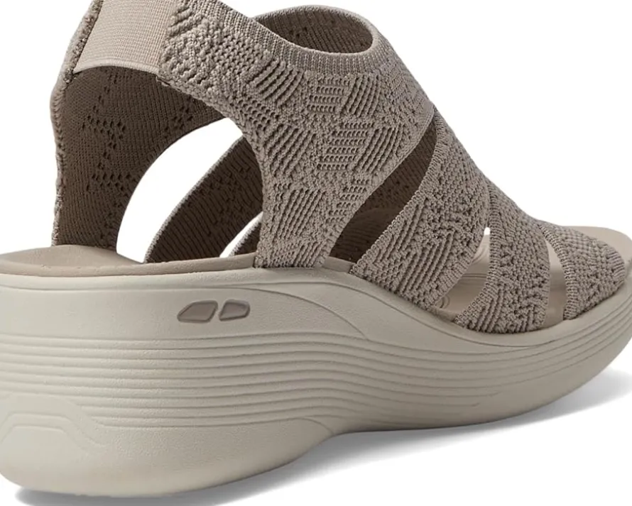 - Experience a comfortable stride as your walk around wearing SKECHERS® Pier-Lite – Memory Maker Shoes that come in a pull-on style and a vegan construction. The sandals are crafted with a crochet knit upper, crochet knit lining, and luxe foam® cushioned comfort footbed. These feature an open round toe shape and an elasticated back strap for a secure fit.