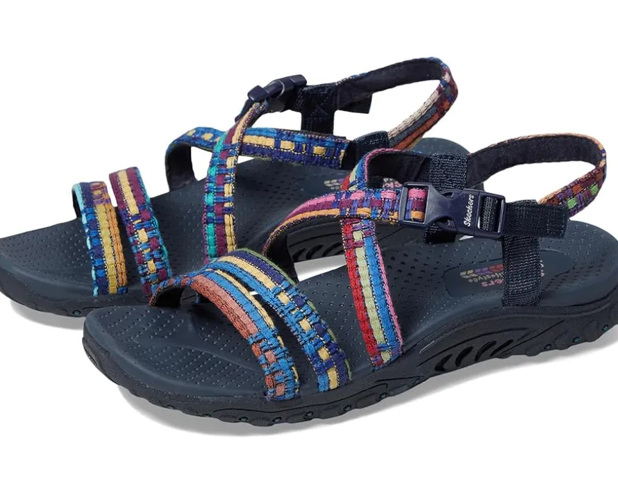 - Be admired for your casual summer look with SKECHERS® Reggae – Sew Me sandal.