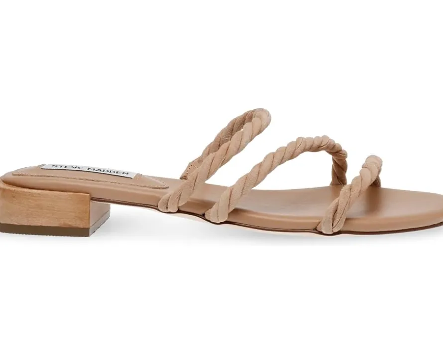 - Add a wow element to every step wearing the Steve Madden® Annah Sandals. The slip-on footwear features suede upper self-twisted straps with stacked low-block heels and open square toe silhouette.