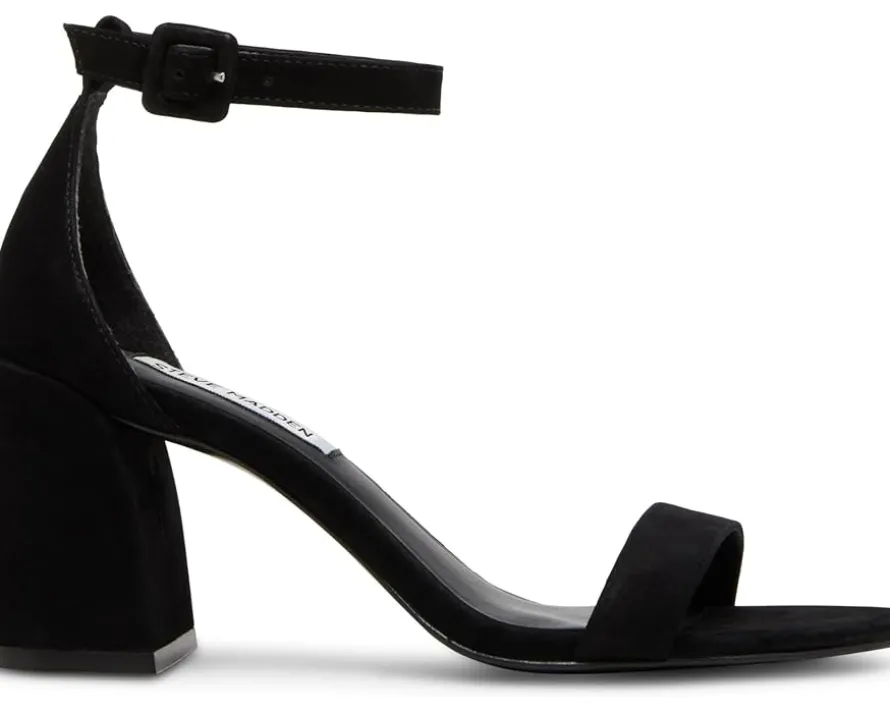 - Embrace classic versatility without sacrificing comfort wearing the Steve Madden® Matty Sandals. The block-heeled monochrome footwear features leather upper and lining construction with buckled ankle strap closure.