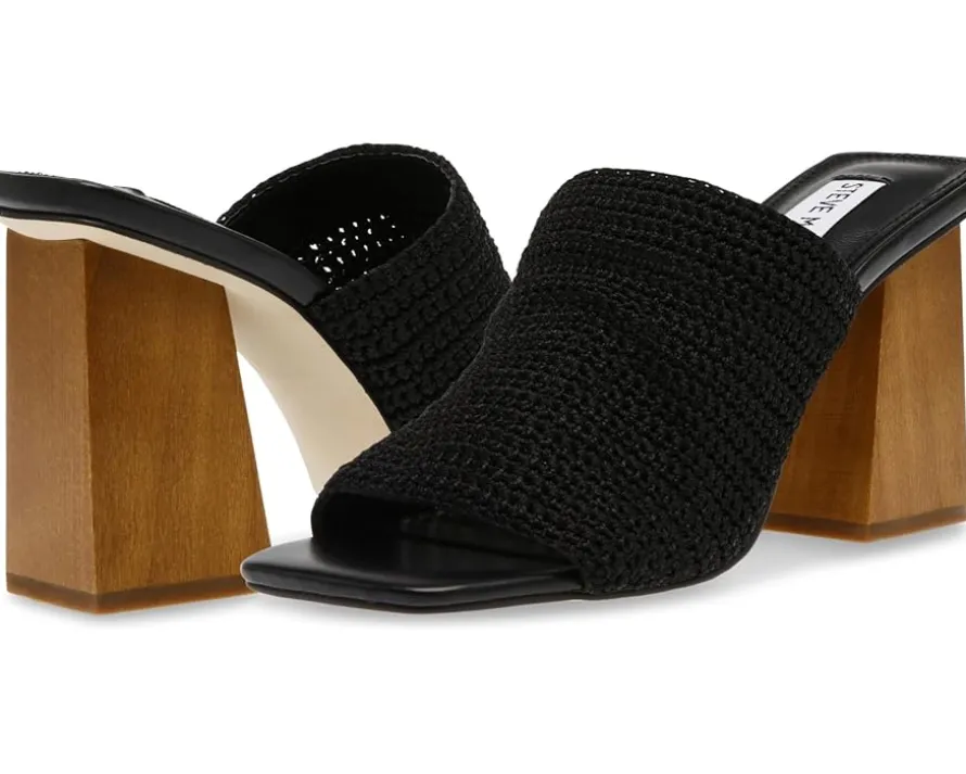 - Secured with a wide woven fabric upper strap and elevated by a sturdy sculptural block heel, the Steve Madden® Realize boasts a simple yet attractive design which is enough to give you a standout look during those warm weather days. The shoes are lightweight and come in a slip-on style for easy on and off. With the lightly padded synthetic footbed, the footwear keeps you moving with comfort.