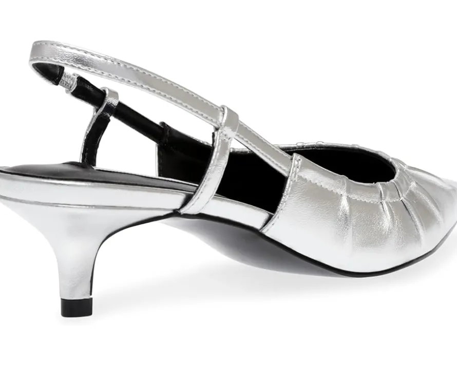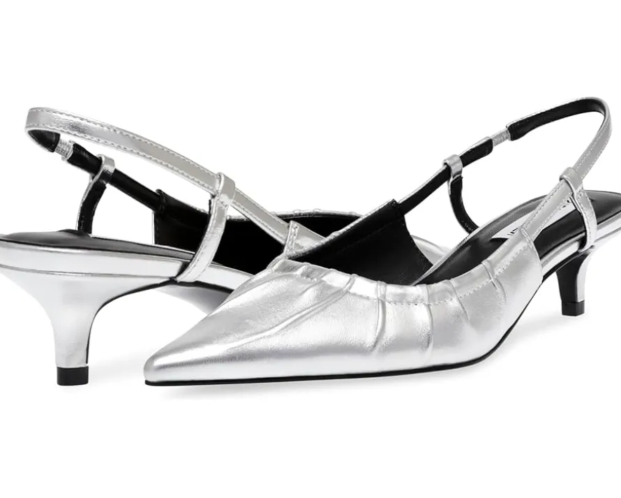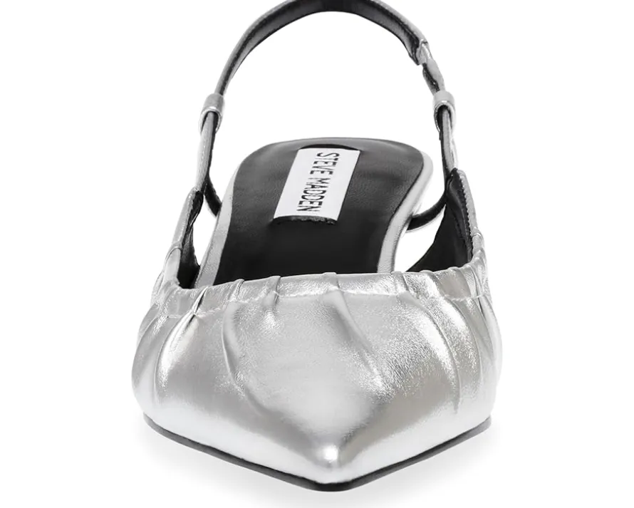 - Make every fashion moment an eye-catching evolution of style as you wear the Steve Madden® Syrie Pumps. The pointed toe pair features leather upper construction and an easy pull-on style with slingback strap closure. With a low-top silhouette, the pair has gathered pleats around the toe and open sides for a modern appeal.
