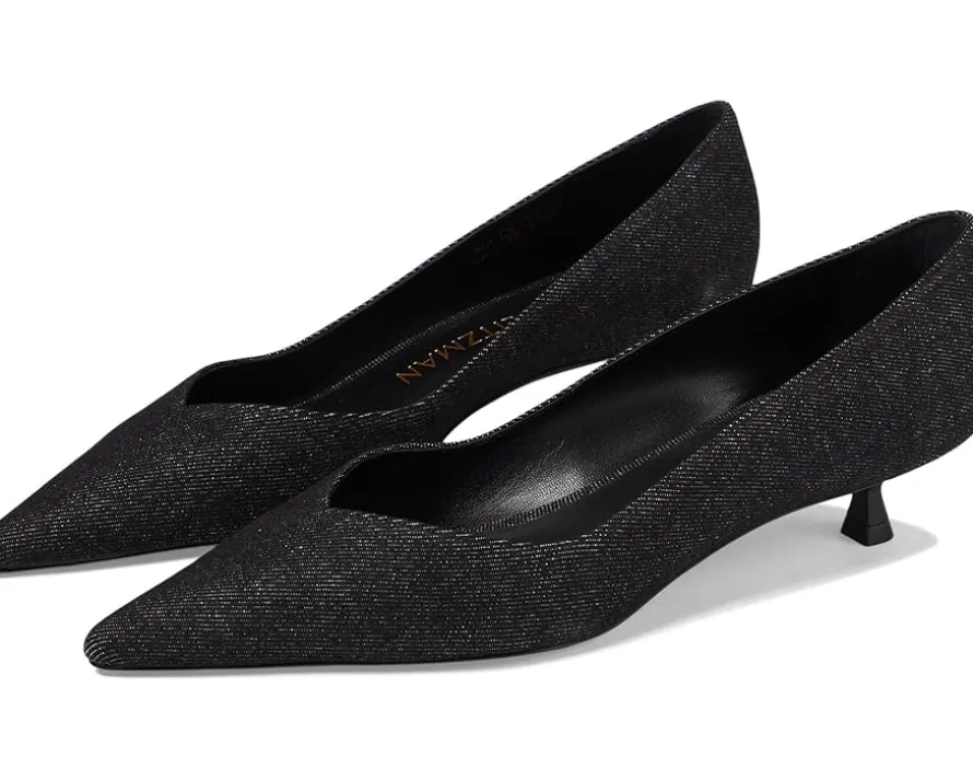 - Elevate your groove wearing the Stuart Weitzman® Eva 35 Pump. Crafted from leather, this pair of slip-on heels features pointed toe design, kitten heel, and brand detailing on the footbed.