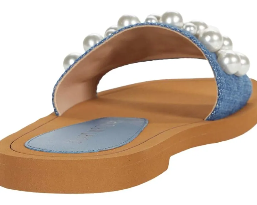 - A heightened display of craftsmanship and luxury, the Goldie Slide from Stuart Weitzman® is composed of smooth leather and adorned with gorgeous signature pearl adornments.