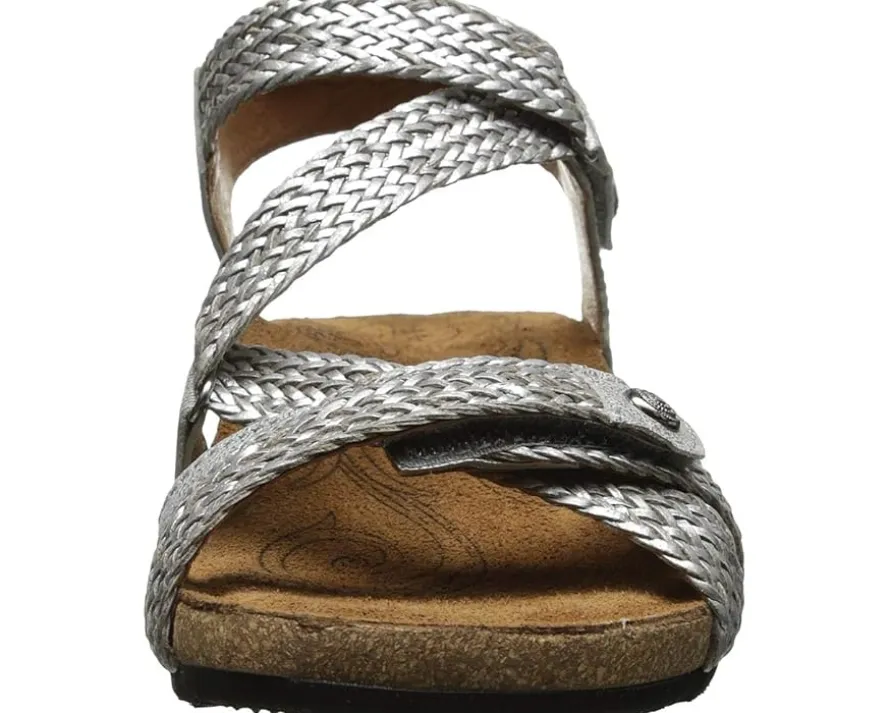 - The strappy Taos® Footwear Trulie open-toe leather sandal offers comfort and style.