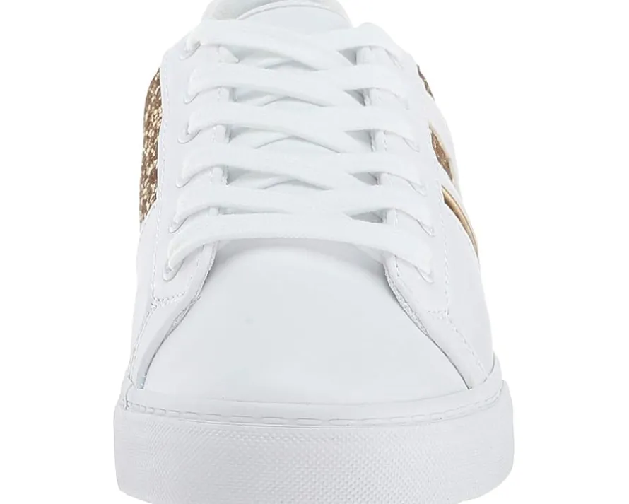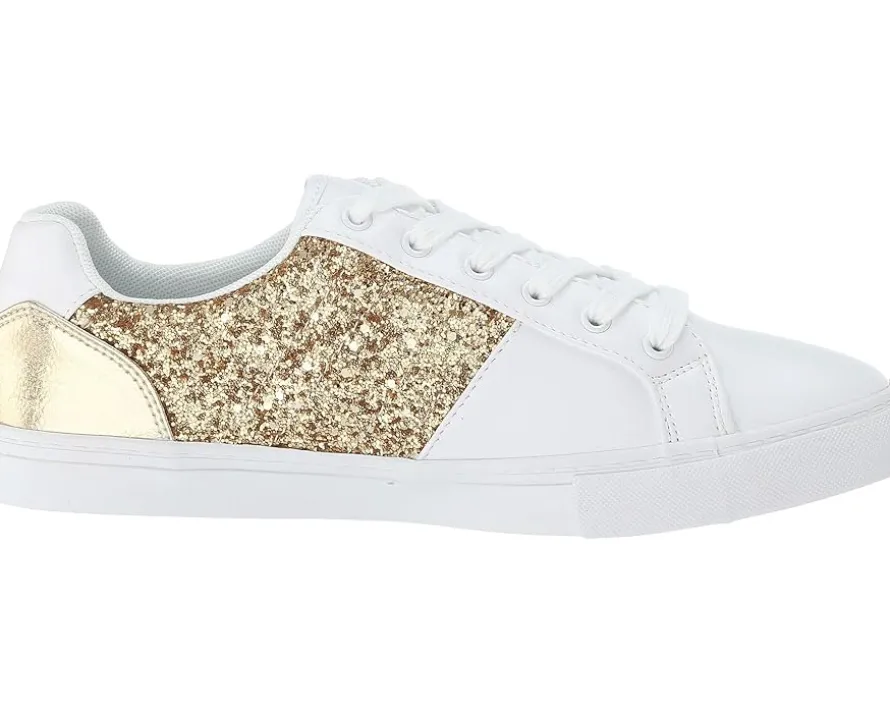 - Detailed stitching with brand logo at sides accented with glitter detail.