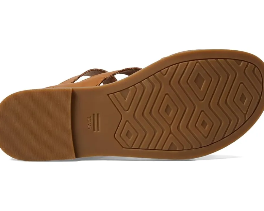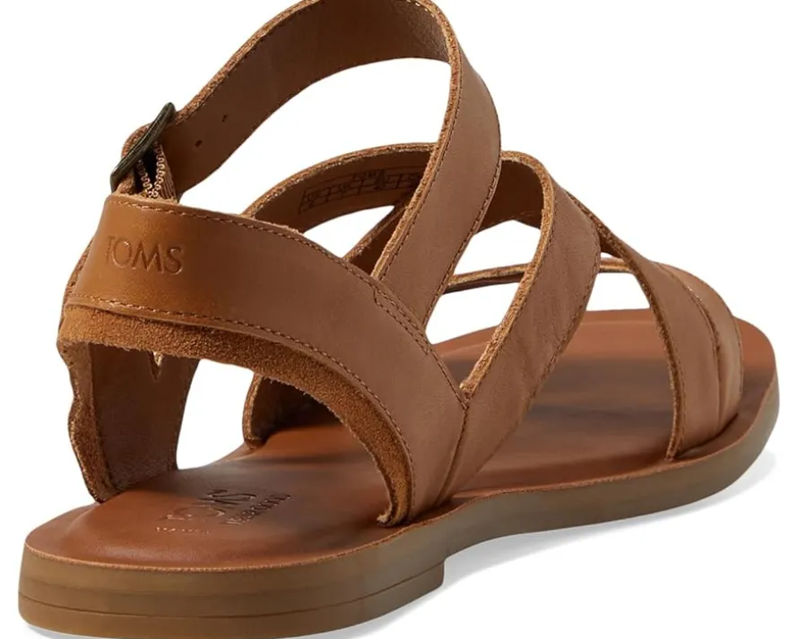- Crafted from leather and suede upper, the TOMS® Sloane sandals are designed for modern women. This pair of flats features open round toe, strap detailing allover, non-removable OrthoLite® Eco LT-Hybrid™ insole for enhanced comfort and breathability made with eco content including hybrid materials, bio-oil and recycled rubber and ankle strap with adjustable buckle closure..