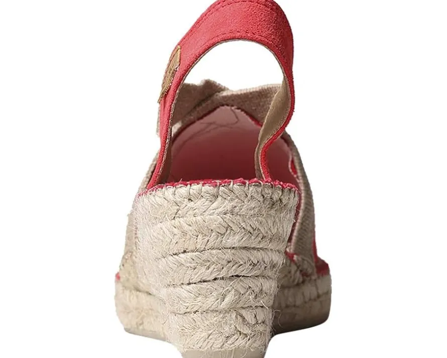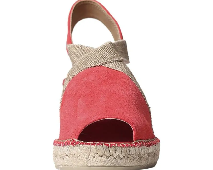 - Peep toe sling back wedge. Back strap displays stitched tag logo.