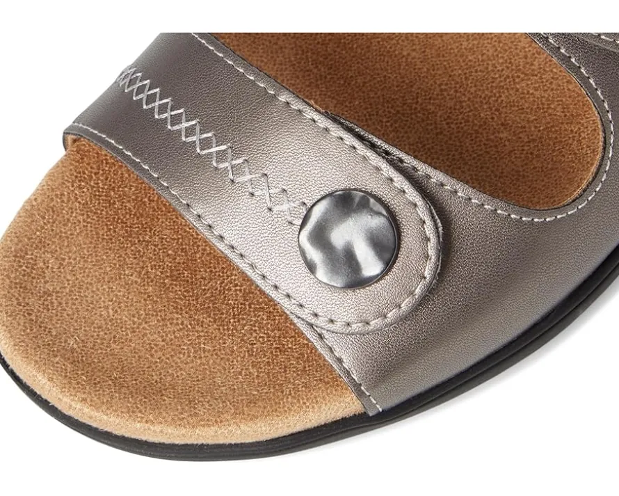 - Lightweight and breathable, the Trotters® Ruthie Stitch sandals are designed to match your everyday comfort and style. The cushioned foam footbed with molded support and leather lining cushions each of your steps. These slide sandals feature a soft leather upper with two adjustable hook-and-loop straps with intricate stitch detailing. A great addition to your footwear collection, walk with comfort and style wearing these leather sandals.