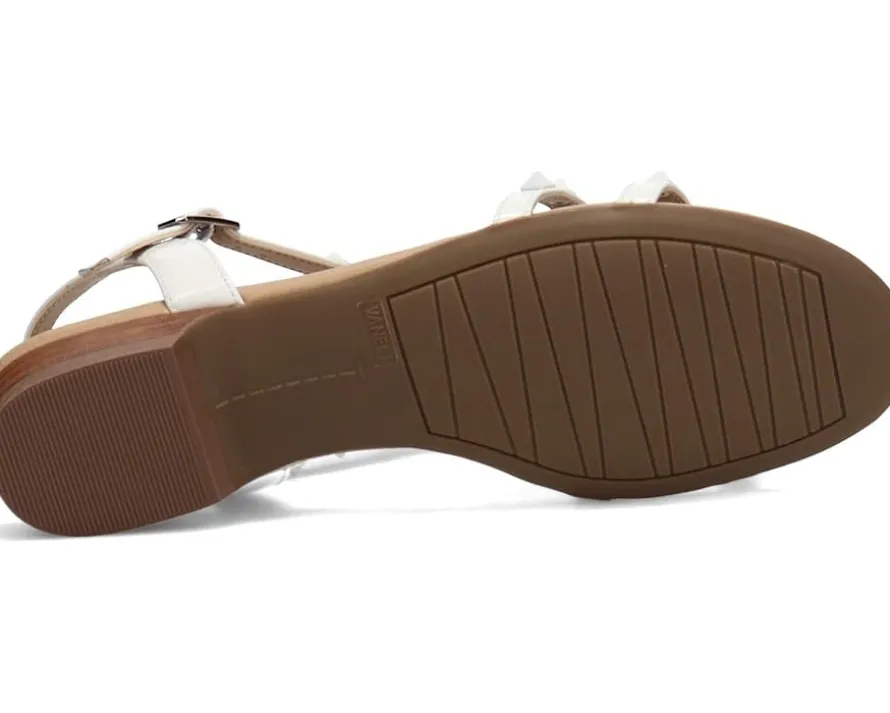 - The Vaneli® Brunel has sophisticated studs. These strappy leather sandals with color-coordinated pyramid studs have an ankle buckle with hidden elastic insert for stretch and comfort.