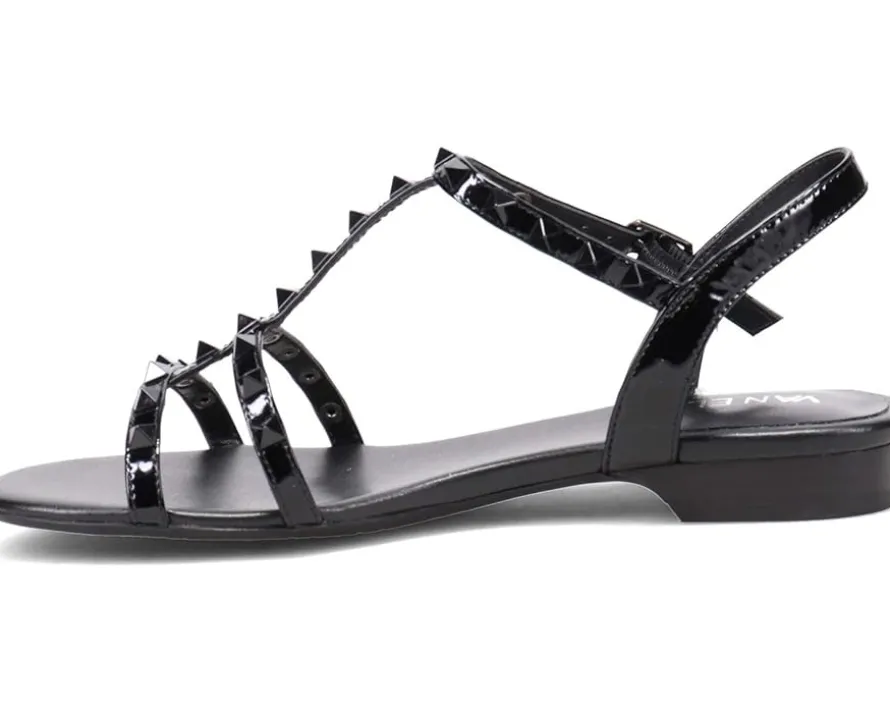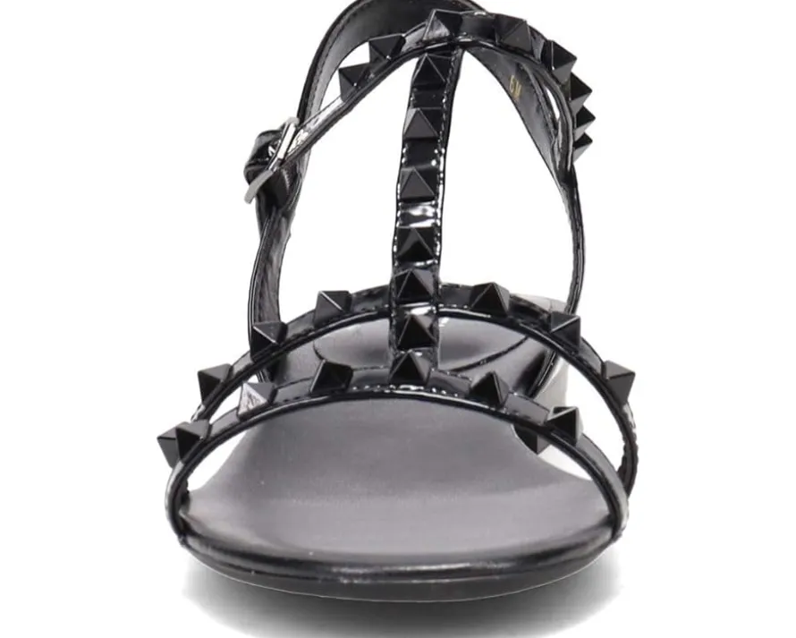 - The Vaneli® Brunel has sophisticated studs. These strappy leather sandals with color-coordinated pyramid studs have an ankle buckle with hidden elastic insert for stretch and comfort.