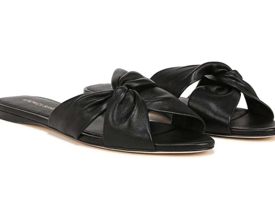 - Make outdoor escapades an excellent way to flaunt your style perfection wearing the Veronica Beard® Seraphina Flat Slides. The slip-on footwear features twisted leather upper straps with cushioned footbed and almond toe silhouette.