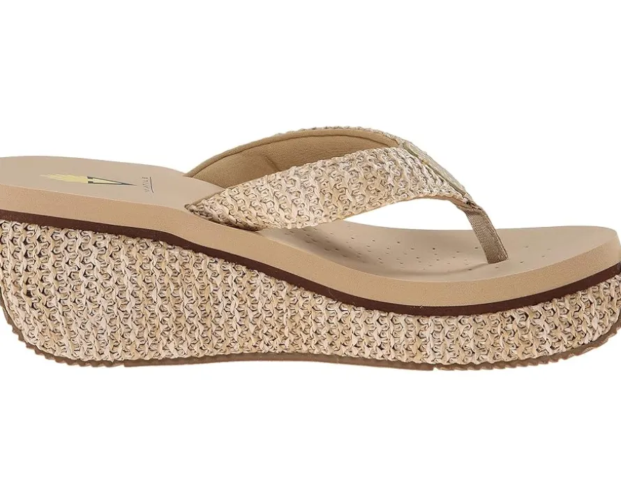 - There’s no such thing as island fever when you’re having so much fun in the sun! Enjoy the lazy days of summer when you rock these vivacious textile VOLATILE™ sandals with breathable man-made lining and lightly cushioned, stationed insole!