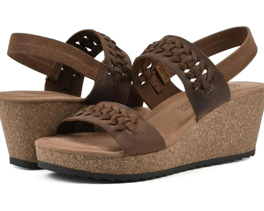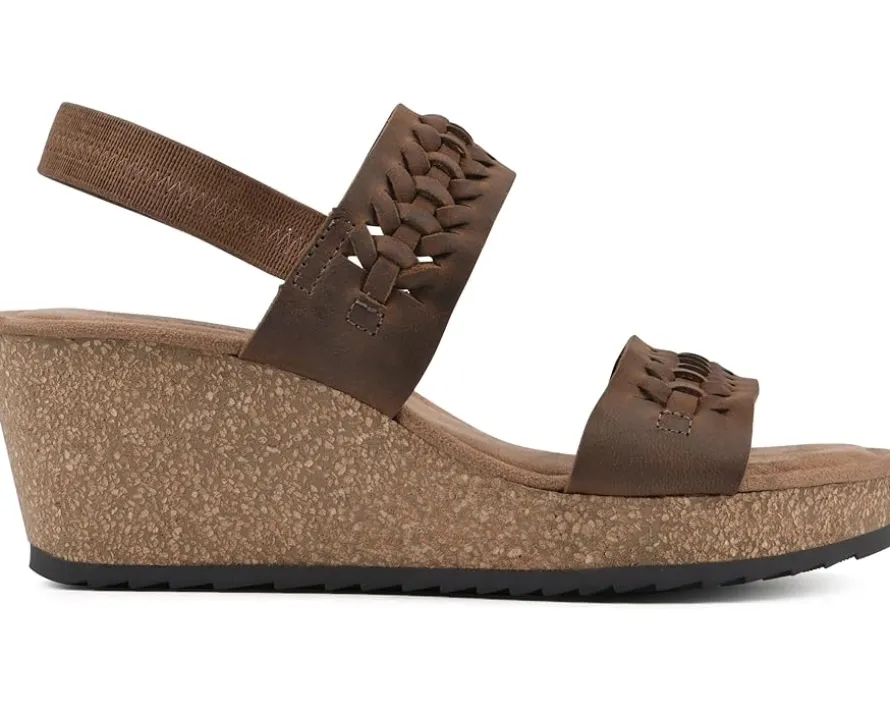 - Conquer any dance floor donning the White Mountain® Pretreat. The wedge heel sandals are designed with elasticized slingback strap closure, padded cushioned synthetic insole, and open round toe design. The woven detailing on the straps adds a quirky touch to your look.