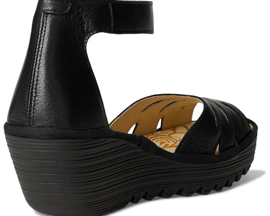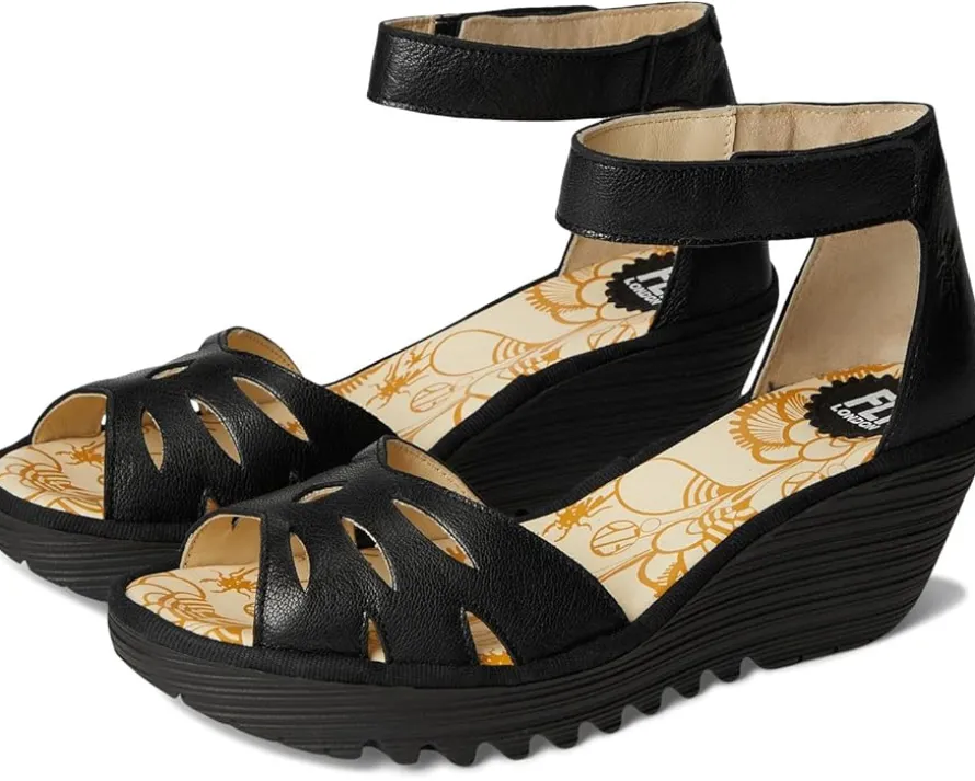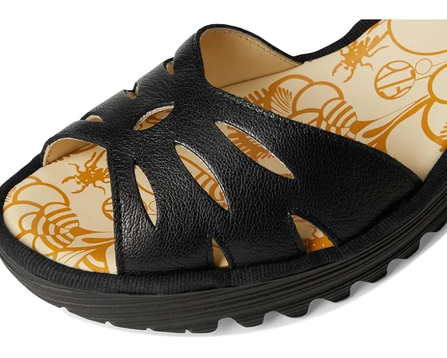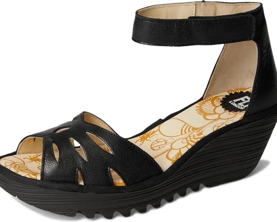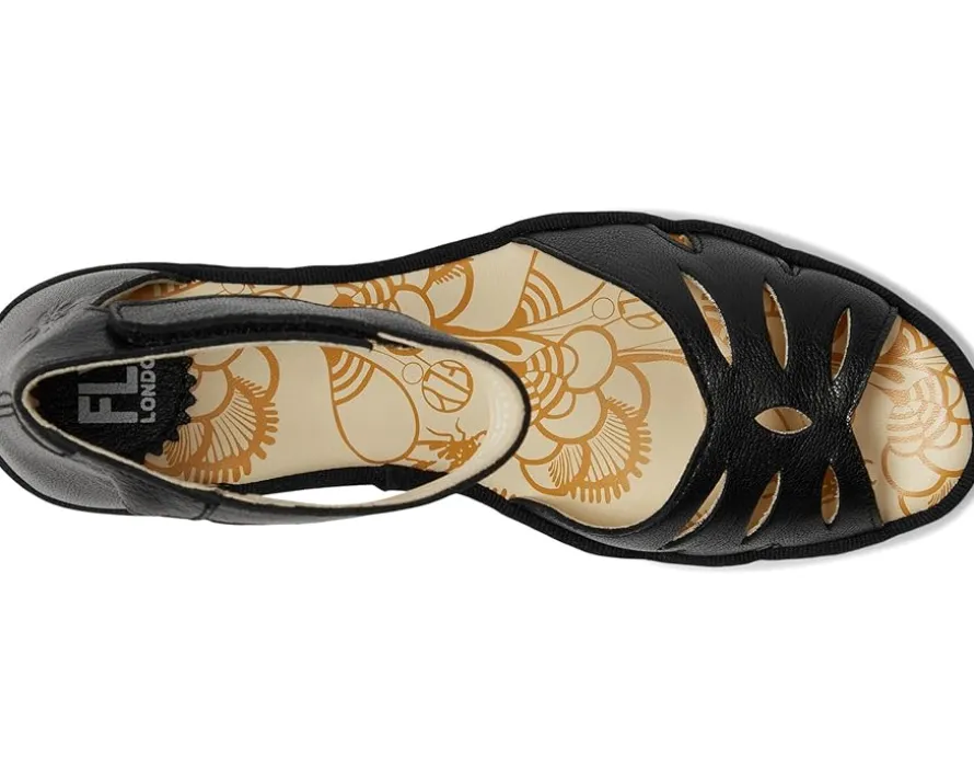 - Take every step forward with extra comfort and style wearing FLY LONDON® YELU454FLY Sandals. The open round toe sandals are designed with a leather upper, leather lining, and heel-to-toe cushion foam insole. The hook-and-loop strap makes the yelu easy to get on/off and the cut out design gives it a cool & unique look.